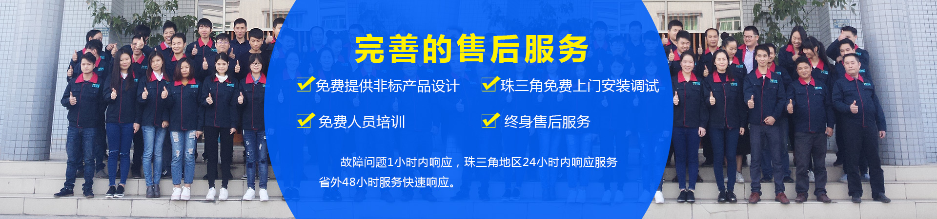 6.做您專屬的技術指導專家24小時在線客服,全天候技術支持! 專業(yè)技術人員上門交機培訓,指導機器操作,并培訓機器后續(xù)維護保養(yǎng),提高機器使用壽命,一年免費保修維護,專業(yè)的售后團隊,保證故障問題1小時內響應,珠三角地區(qū)24小時內上門,廣東省外48小時內上門。 |